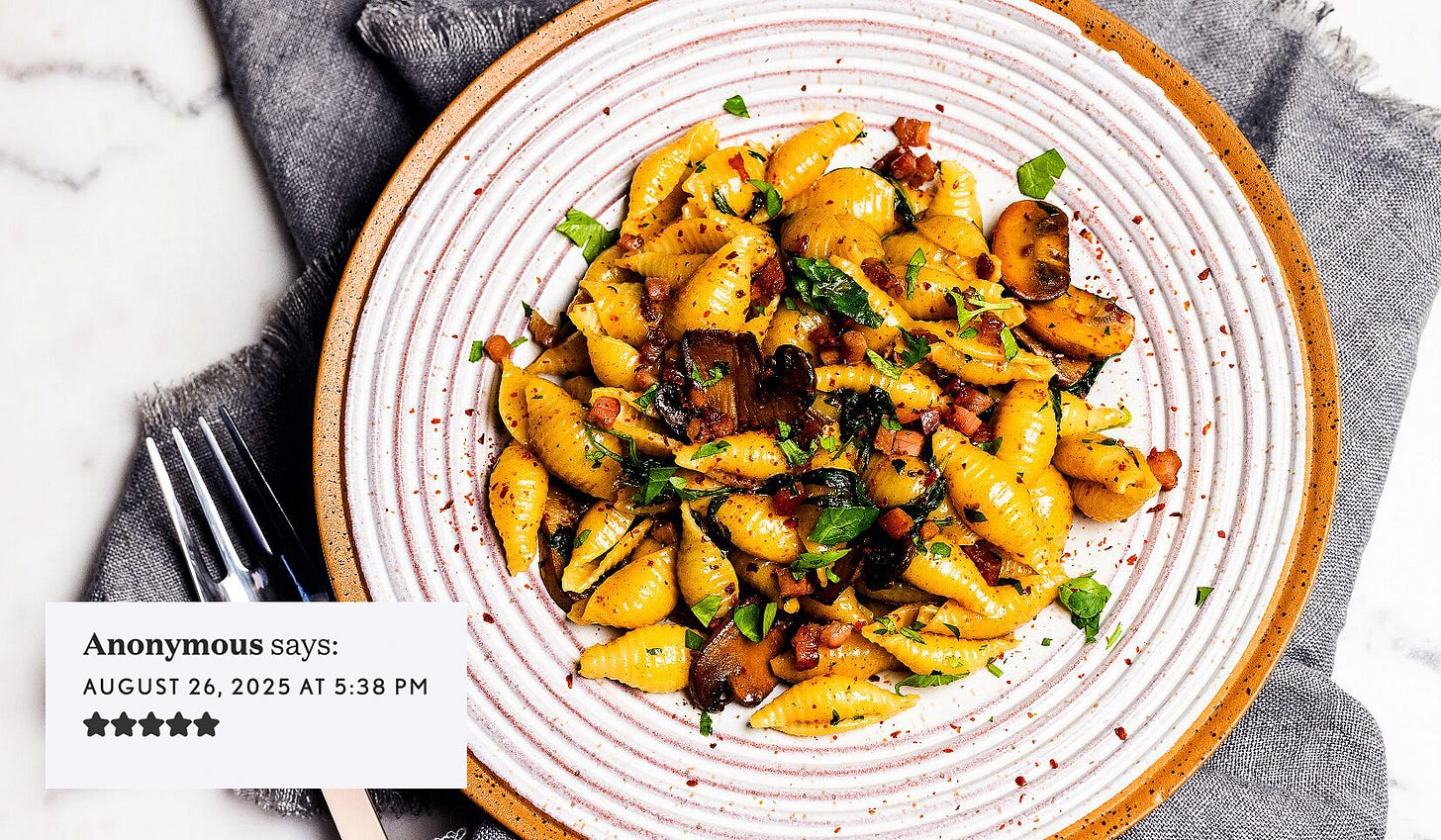 Thank you for the five-star review! This pasta with mushrooms and prosciutto is a smoky, spicy, rich, and easy pasta dinner recipe. It is truly perfect for any day of the week.