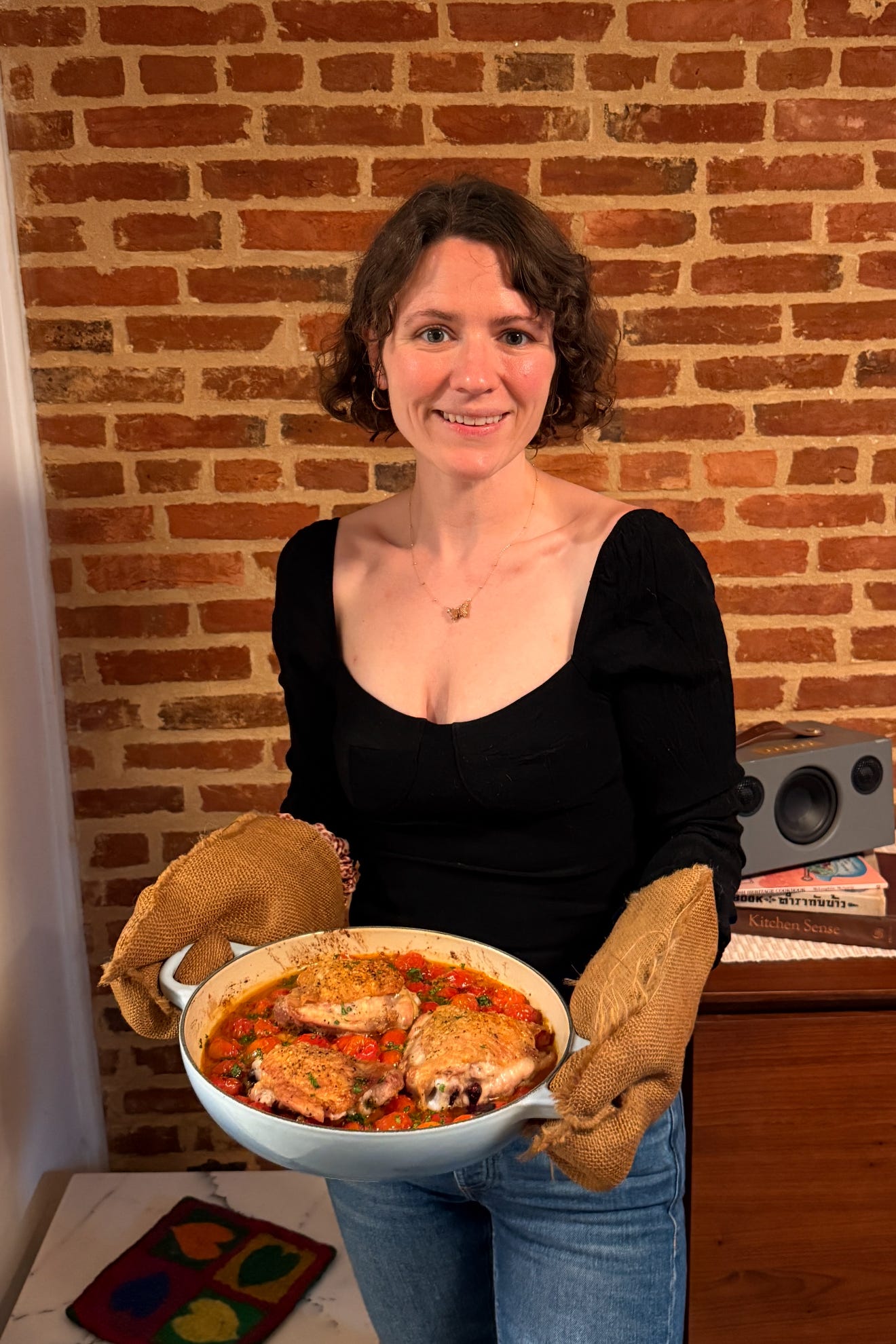 Last week was such a whirlwind of cooking, and I was a little behind on updating the website. For today’s newsletter, I have lots of new recipes to share–like the chicken with roasted Calabrian cherry tomatoes I’m holding above–and plenty of reader faves. Let’s dig in.
