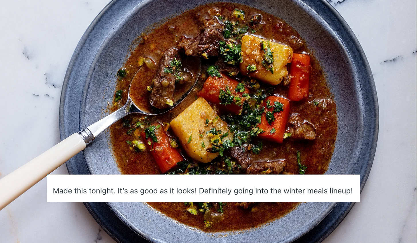 This is a new recipe, but people are already loving it! So happy this well-spiced, aromatic, rich beef stew tasted delicious enough to add to your cozy meal repertoire.