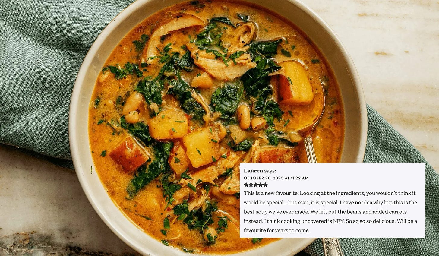 This spicy ginger and sweet potato chicken soup is easy to make with a fragrant, spicy homemade broth and tender sweet potatoes.