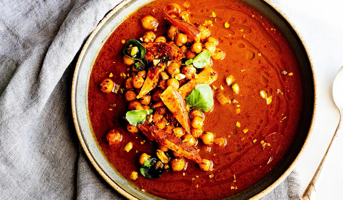 This easy pumpkin curry soup with chickpeas comes together super fast, but just because it’s light on effort doesn’t mean it’s light on flavor!