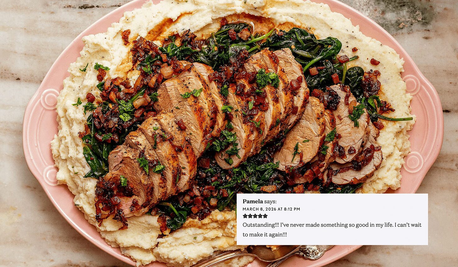 Thank you, Pamela! There’s a reason this one is my favorite! The pancetta, the juicy pork, the spinach, and those sweet, savory caramelized shallots. Not to mention the rich ricotta mashed potatoes. Truly heaven on a platter!