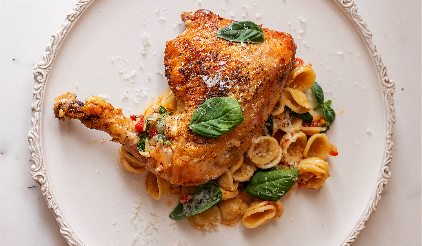 Juicy roasted chicken, aromatic fennel, and Calabrian-spiked pasta sauce make this a savory, spicy dinner you’ll want on repeat.