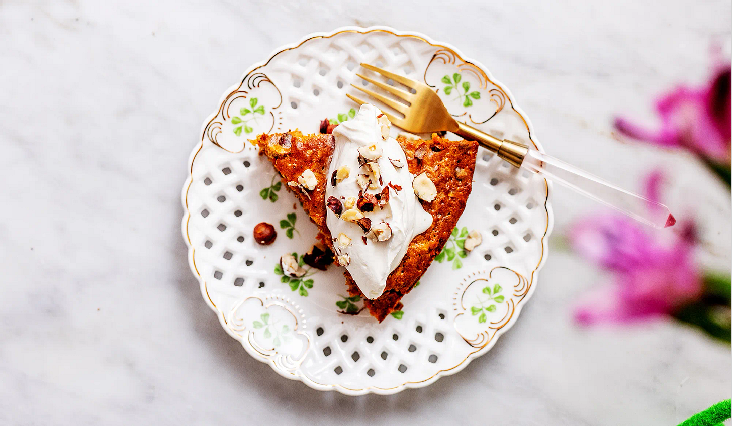 This Irish carrot pudding is moist and flavorful and pairs perfectly with dates and hazelnuts for a nice little sweet treat.