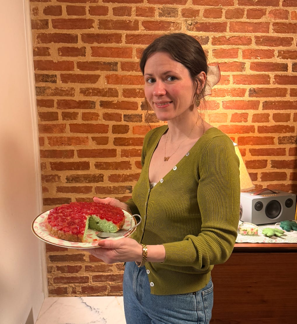 My biggest win is my Shamrock Shake Upside-Down Cake! If you’ve been following me on TikTok or Instagram, you know that cake nearly drove me into lunacy. I just could NOT get it right despite having a very clear vision of what I wanted it to be. But, I’m so, so excited to be able to share a FINISHED recipe for you just in time for St. Patrick’s Day! It’s such a fun and festive cake, and I hope that if you decide to make it, you’ll love it as much as I did.