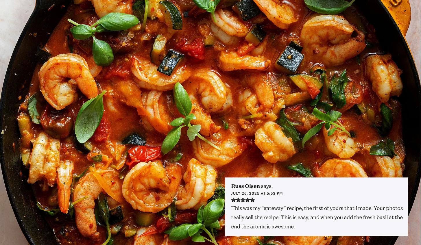 Another tomato, shrimp, zucchini recipe…why not? ‘Tis the season to use up all the tomatoes and zucchini! Thank you so much for your comment, Russ! I’m thrilled you enjoyed this summery shrimp dish.