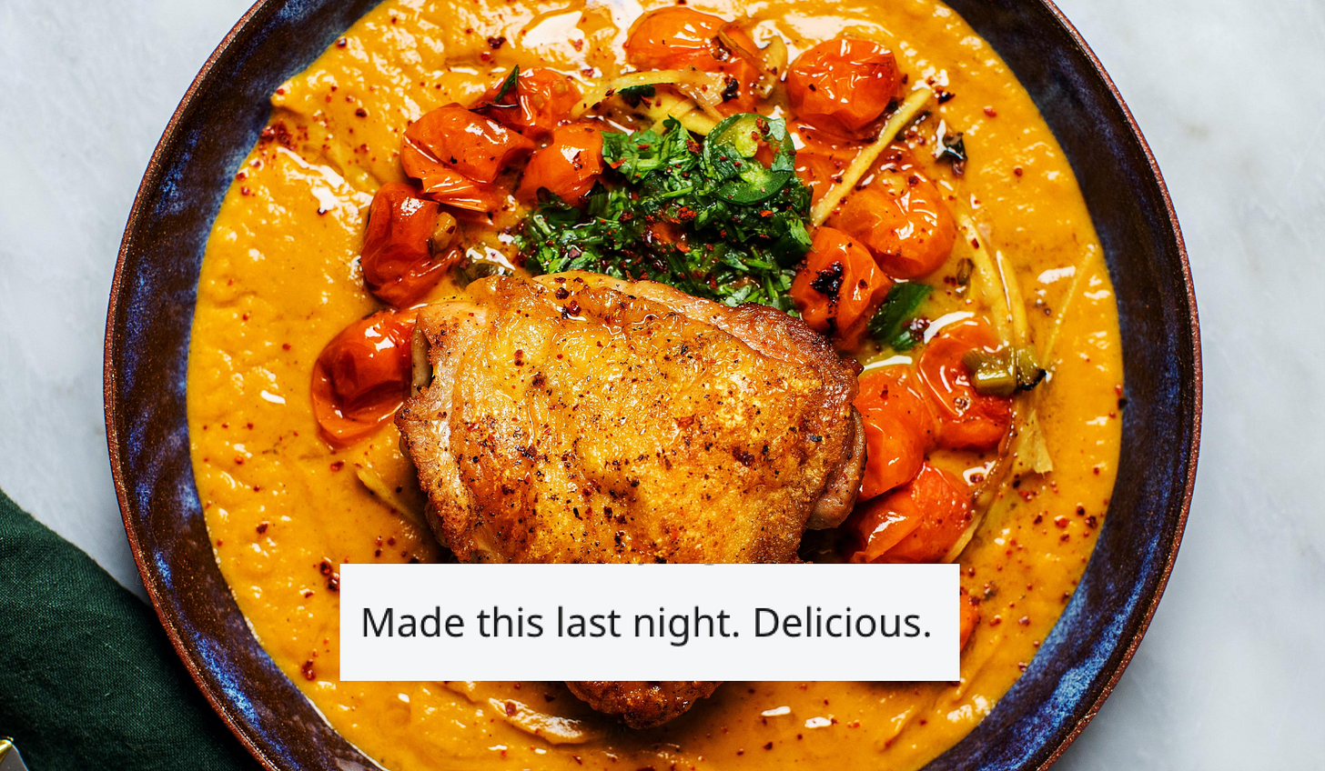 This chicken with coconut curry pumpkin is loaded with spicy flavors, richness from coconut, and brightness from fresh herbs that make for a balanced and delicious dinner.