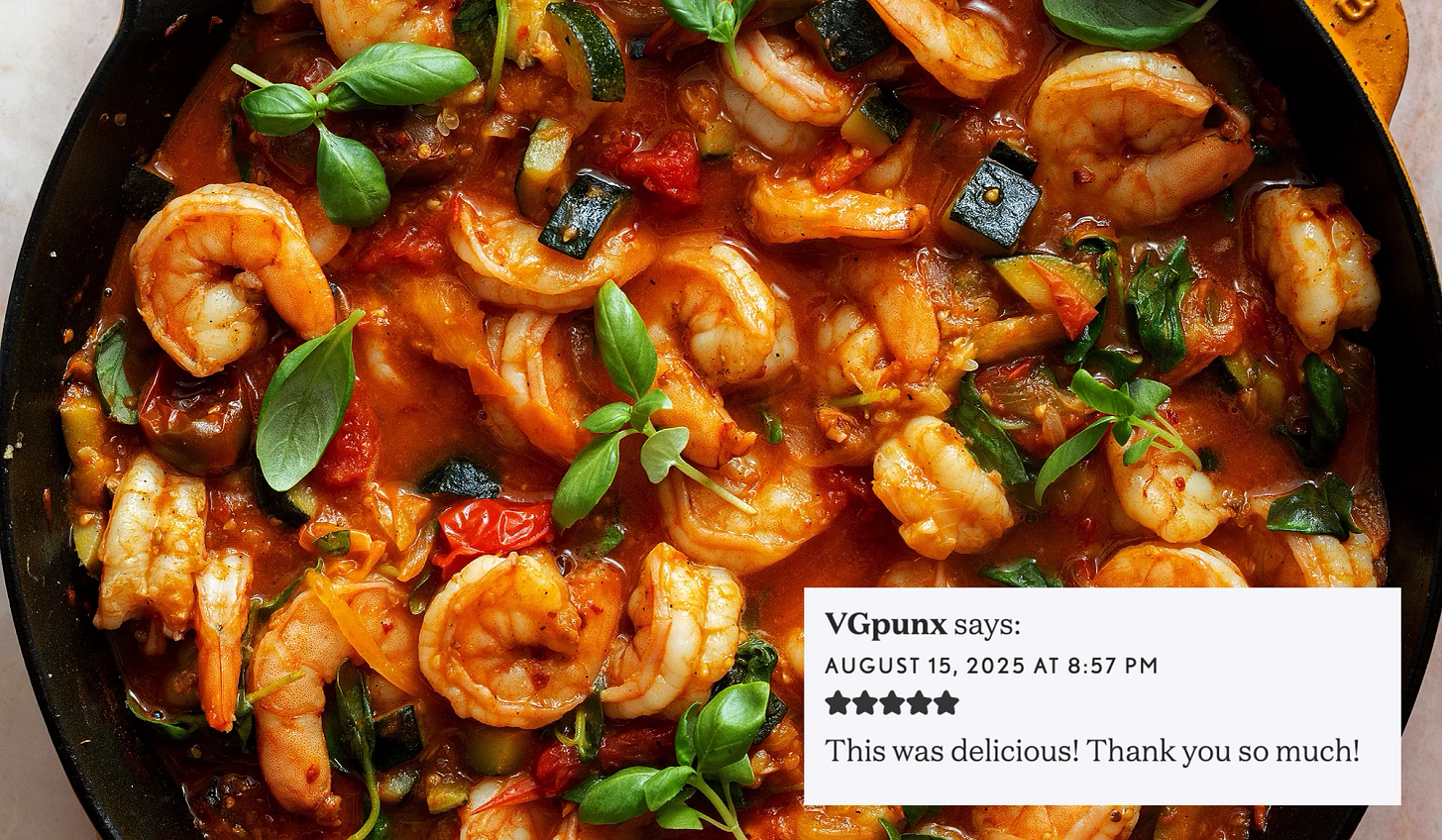 You can never have too many variations of shrimp, zucchini, and tomatoes, right? I’m so happy this was a hit for you!
