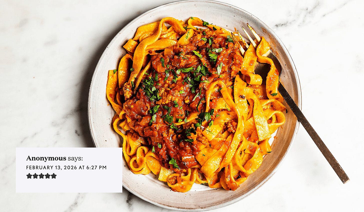 Thank you for the 5-star review! This ragù is spiked with a little balsamic vinegar and fennel pollen for an aromatic, hearty, and fragrant sauce that works perfectly on wide pasta ribbons.