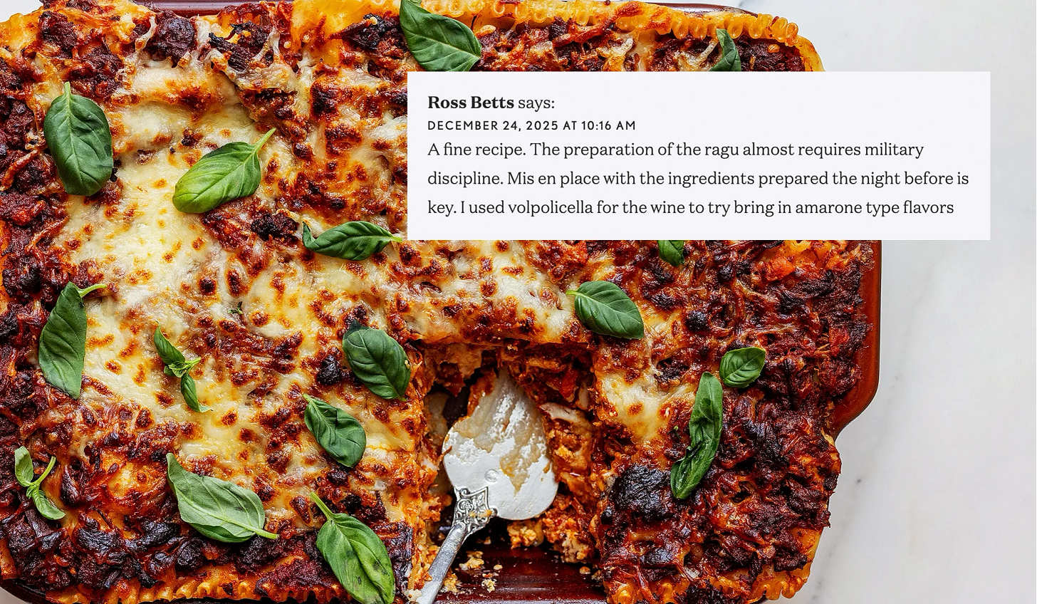 Thank you, Ross! This lasagna is definitely a labor of love, but advanced prep will definitely save your sanity, and the finished product is so worth it.