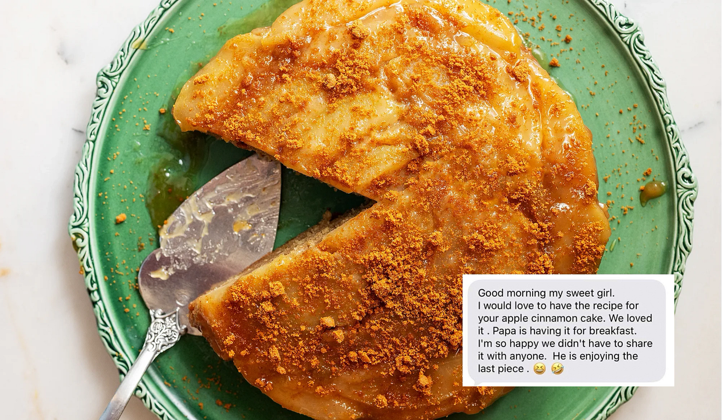 A reader wrote me and said she made my Apple Biscoff Upside-Down Cake for Christmas and woke up to this wonderful text from her Nana. I’m so thrilled you were able to impress Nana and Papa for Christmas; what a wonderful feeling!