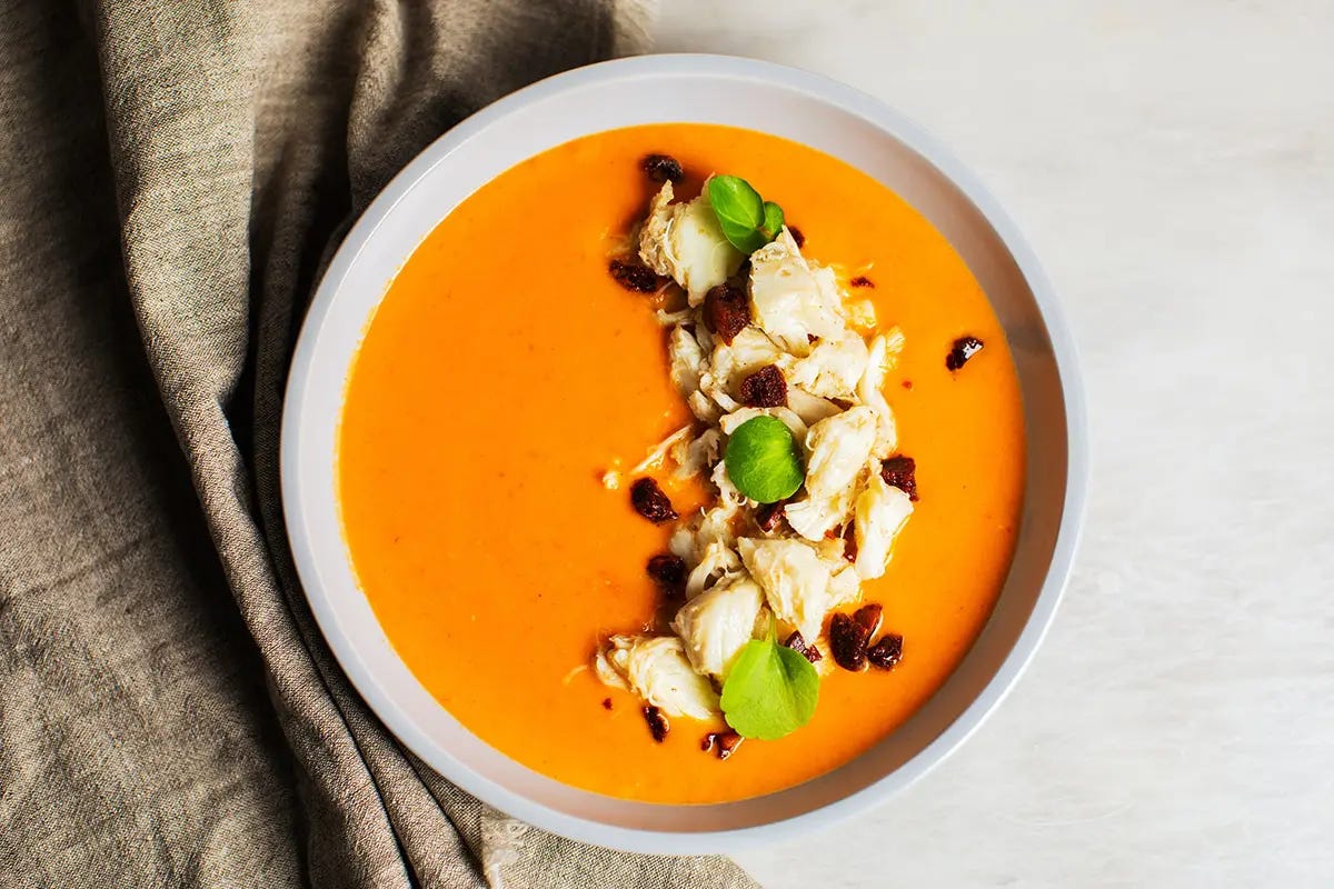 Perfect as a starter but filling enough to be enjoyed as a main with crusty bread, this crab bisque with chorizo is flavorful and rich, with just the right amount of smokiness.