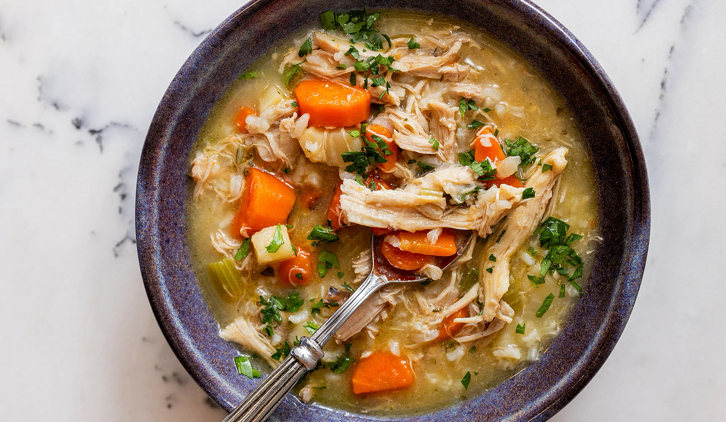 Bright, savory, and deeply comforting, this lemon-rosemary chicken and rice soup begins with a rich homemade broth and finishes with fresh rosemary and lemon for a warming soup you’ll want all winter long.