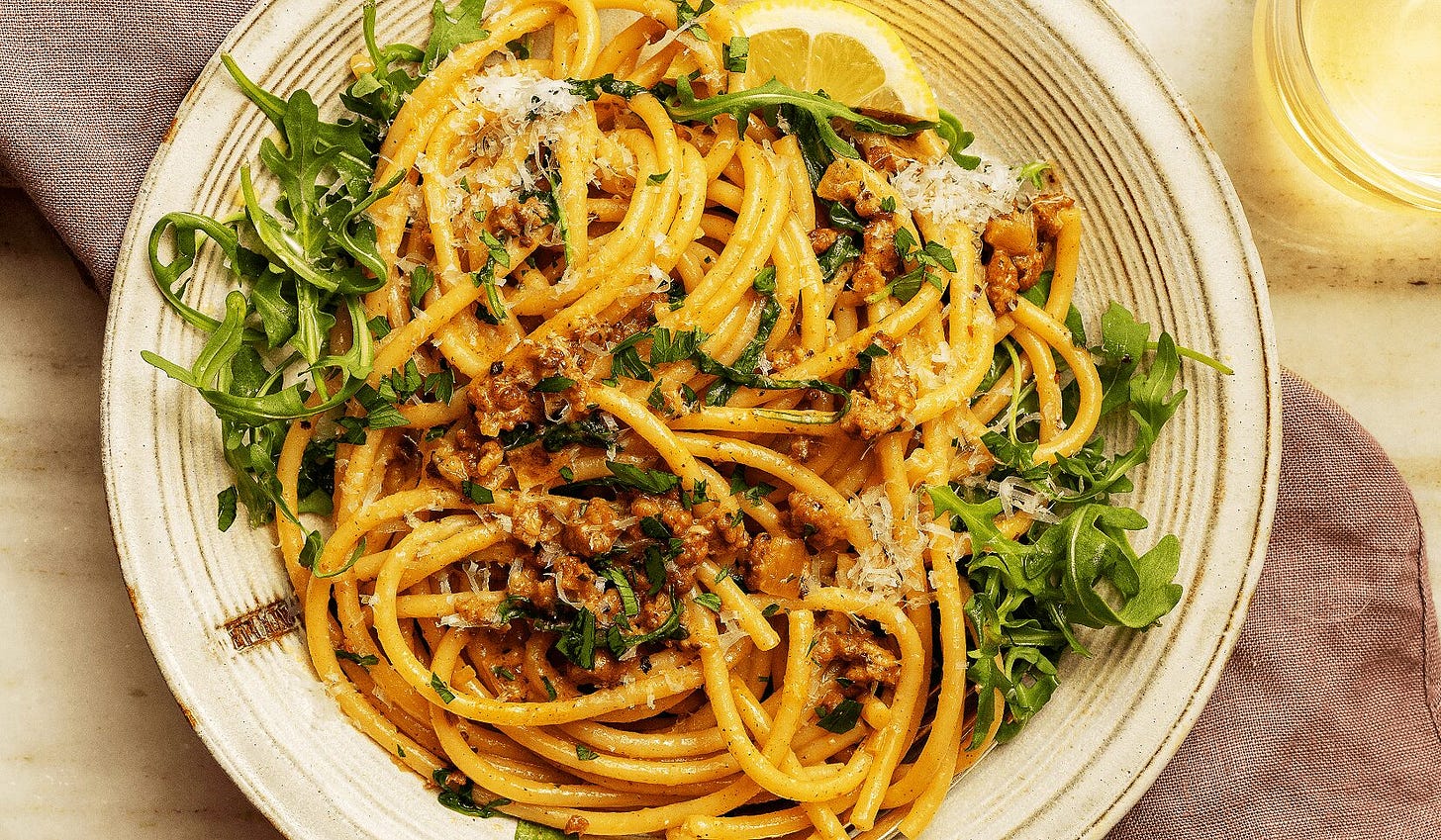 Sweet onions, charred cabbage, and plenty of garlic create a savory base for tender pasta, while walnuts add crunch and depth.