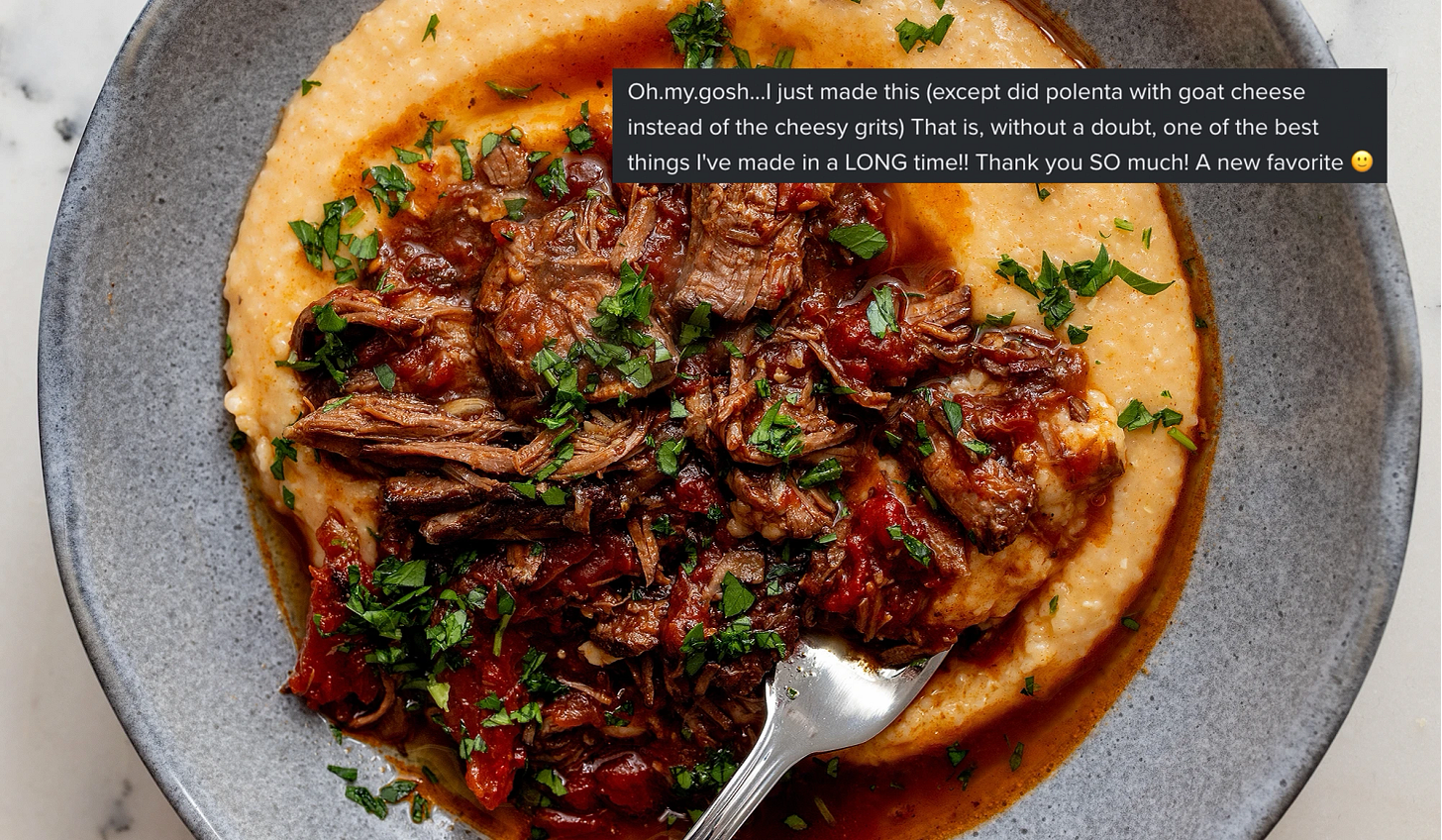 Thank you so much! Polenta with goat cheese is also a perfect accompaniment to the rich shredded beef. So happy you enjoyed it!