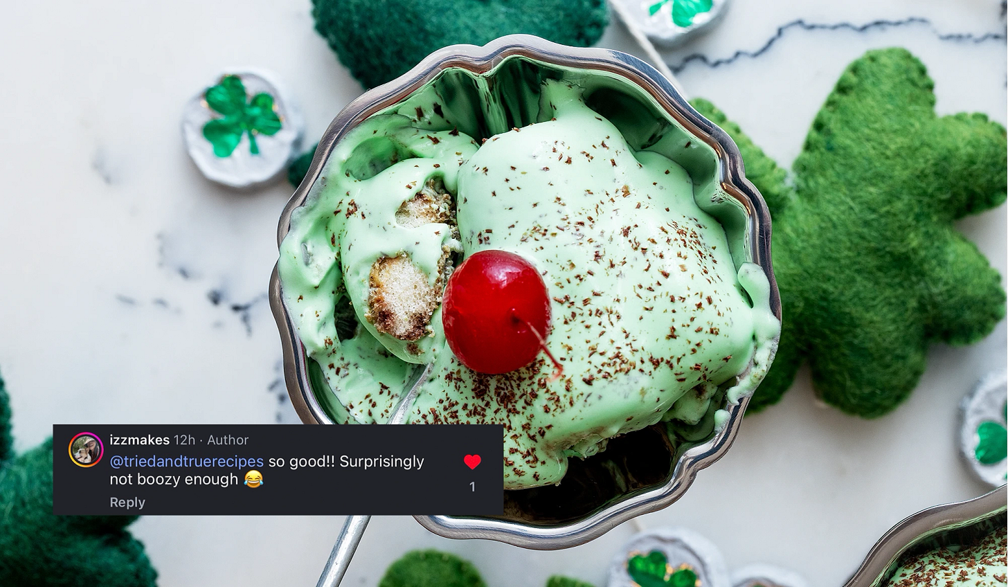 Thank you, Izz! It may not be St. Patrick’s Day anymore, but that doesn’t mean you can’t make this Shamrock Shake Tiramisu! And you can always load up on extra Irish Cream!