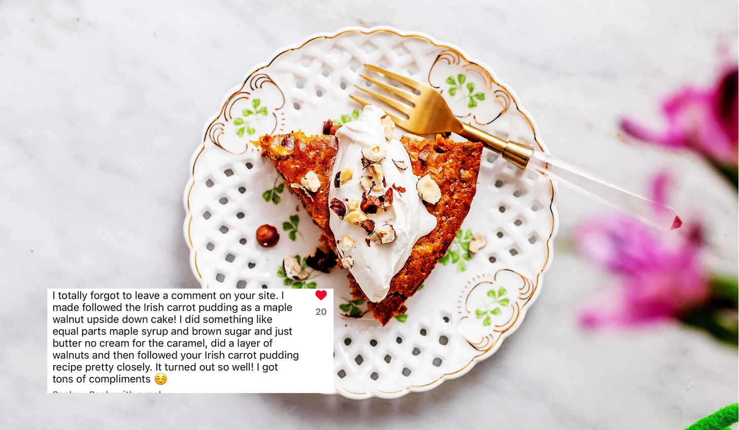 YUM! Thank you for this comment, Caitlin! The carrot pudding is SUCH a great base for an upside-down cake, and I love the idea of the walnut caramel on top. Absolutely delicious idea!