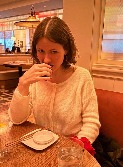 We start at Pitruco for a very good margherita pizza and an amazing seasonal Caesar salad. Their Caesar isn’t traditional, but I love the addition of endives, grilled pears and onions, and shaved fennel. Then, we go to Persimmon for coffee. I’ve been enjoying their winter latte, which has rosemary and cranberry in it. Lastly, we finish at Uchi, which is presently my favorite sushi place. Their happy hour prices are really good and allow you to try so many different things! I can’t even remember everything we got, but we stick to mostly nigiri. My favorite bites? First is the salmon nigiri, which they brush with tamari. Second is the madai (sea bream) nigiri, which has lemon zest, and I think they brush it with a little extra virgin olive oil. That said, there wasn’t a single bad bite, so really all of them were my favorite. We finished with the banana cake paired with a chicory caramel. It’s divine and has inspired my next upside-down cake! I’m going to attempt a banana + chicory upside-down cake, and I’m very excited.
