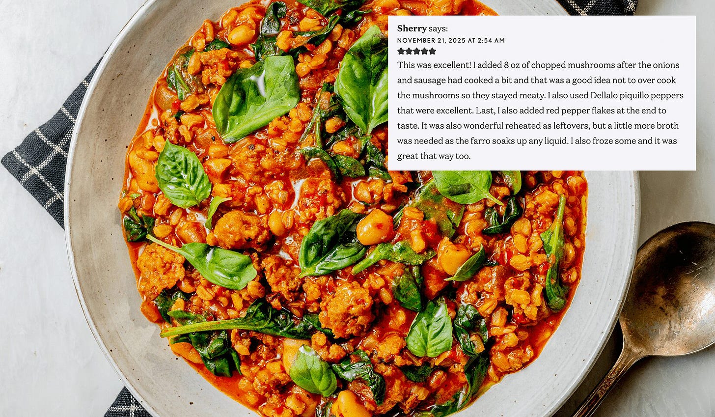 Sausage, Farro, and White Bean Stew