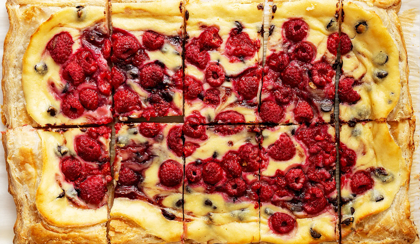 Okay, maybe it’s a little late in the season for all the raspberry-themed desserts, but I couldn’t stop myself. This raspberry cannoli tart is so good. Features a ricotta + dark chocolate chip filling, a swirl of raspberry preserves, and macerated raspberries on top of a flaky, buttery puff pastry. YUM!