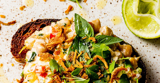 I’m also working on developing a version of my popular Exploring Vegan recipe. Instead of chickpeas, I’m making a delicious Thai basil chicken salad.